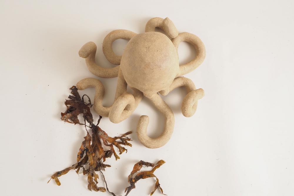 Suddenly he's just there. From bits and pieces of clay lying around he just entered the building. Meet mr Octopus. A grounded sandy sculpture from the beach in Malmö.