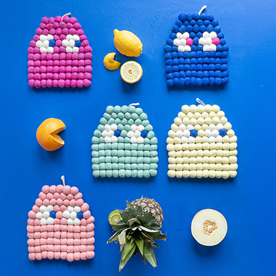 Eat or get eaten by our trivet series of friendly ghosts! Handmade trivets of 100% high-quality wool with AZO-free colors. Perfect for pots because wool as a material is both dirt and heat-repellent. The trivets both protect, decorate and color the table. All trivets have a loop for suspension so they can both decorate the wall as well as the table.
