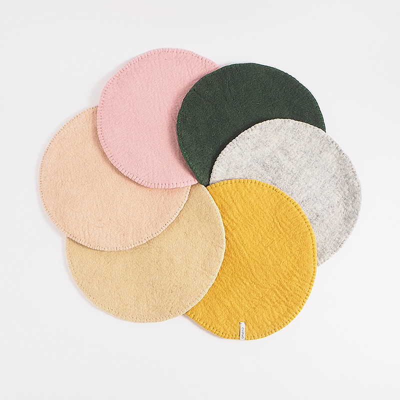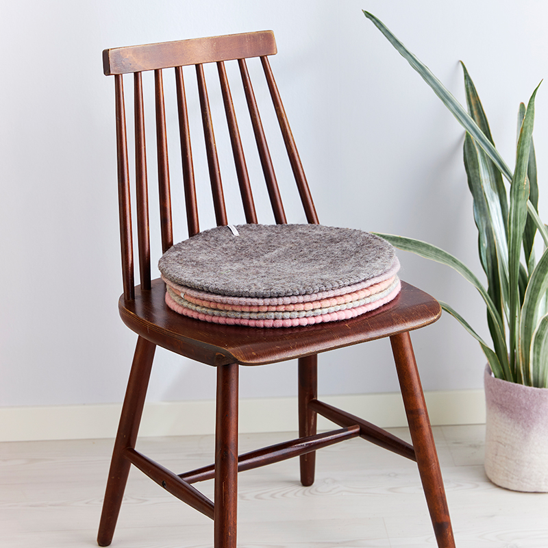 While the quality and comfort match SEAT CUSHION 18, this model features the same color on the top and underside, measures a little larger (35 cm in diameter), and has a beautiful handstitched rim.