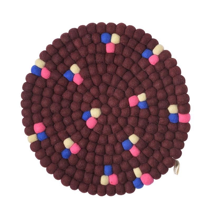 Seat Cushion 26 is a round wool seat cushion with a carefully designed graphic pattern and a 35 cm diameter. Soft to sit on and visually distinctive, it brings both comfort and a calm, modern character to the space.