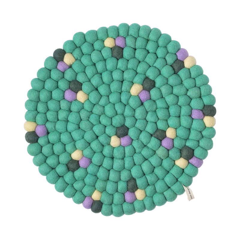 Seat Cushion 26 is a round wool seat cushion with a carefully designed graphic pattern and a 35 cm diameter. Soft to sit on and visually distinctive, it brings both comfort and a calm, modern character to the space.