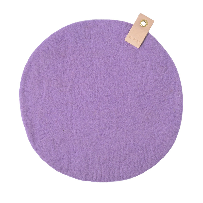 Aveva’s handcrafted wool seat cushions, dyed with natural colors. Each cushion features a leather detail with a loop, ideal for hanging. The leather is organically certified, sourced from Swedish farms and tanned using a vegetable-based process. The cushion is solid-colored, with the same shade on both front and back.