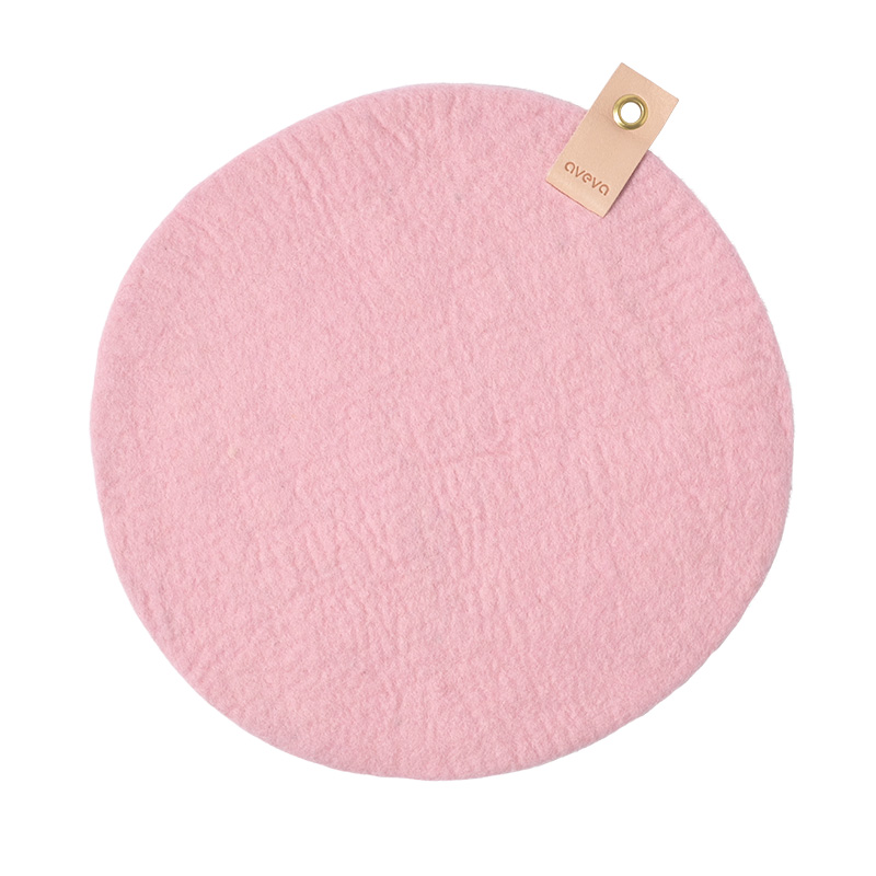 Aveva’s handcrafted wool seat cushions, dyed with natural colors. Each cushion features a leather detail with a loop, ideal for hanging. The leather is organically certified, sourced from Swedish farms and tanned using a vegetable-based process. The cushion is solid-colored, with the same shade on both front and back.