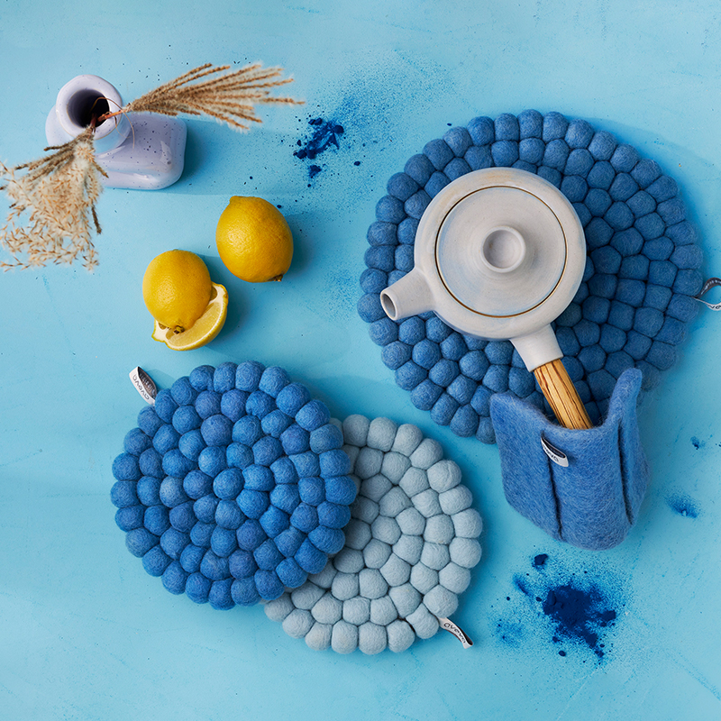 These trivets are handmade of 100% wool that gives a soft and robust feeling. Perfect to place the pots on because wool as material is both dirt and heat-repellent. The trivets both protect, decorate and color the table. As for all of our wool products, this trivet is made of high-quality wool, AZO-free colors, and is naturally heat and stain-resistant. All trivets have a loop for suspension so they can both decorate the wall as well as the table.