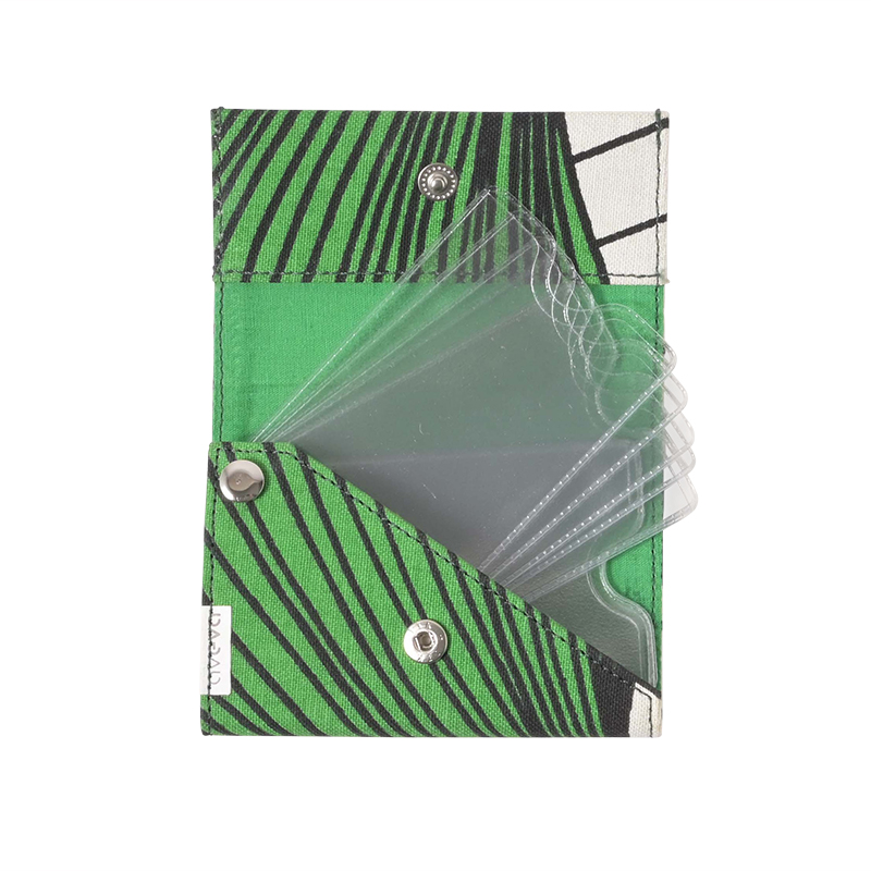 The same principal as before but in recycled cotton. The wallet is a hand made product, including 10 plastic pockets with perfect fit for