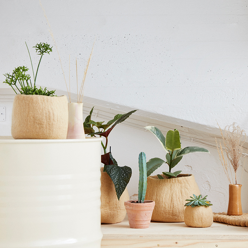 Avevas handgjorda krukor i ull som är vattentäta tack vare sin behandling med naturgummi på insidan av krukan. Perfekta krukor att placera i fönsterkarmen, på golvet, bordet eller varför inte hängande. Kombinera gärna krukan med vår ampel, rekommenderad till krukorna i storleken small och medium. Välj bland alla våra fina färger och placera dina växter i våra snygga ullkrukor.