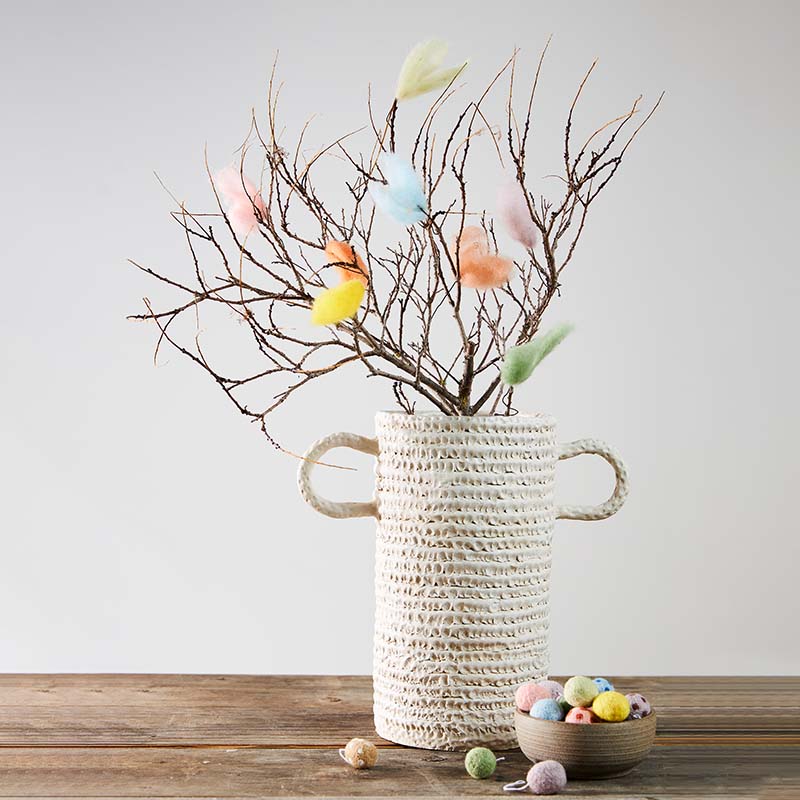 Piffa upp din påsk med naturligt färgade ullfjädrar och påskägg för ett påskträd i skandinavisk stil, i ekologiskt material. Påsk betyder ägg och fjädrar och vi ger dig naturligt färgade ullfjädrar för att dekorera ditt påskris eller gren.