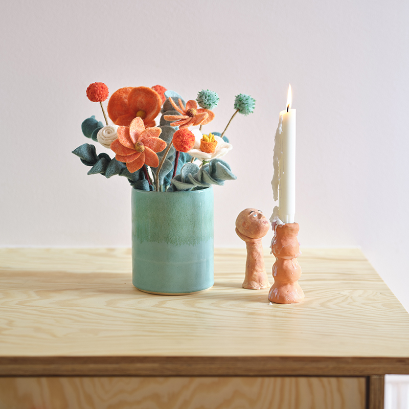 Denna bukett med handgjorda blommor i 100% ull, kommer att hålla för evigt och förbli vacker i generationer. I buketten ingår 15 st blommor inslagna i papper.