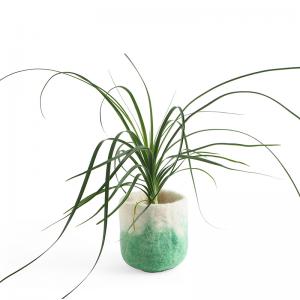 Avevas handgjorda krukor i ull med platt botten och två olika färger som blandar sig med varandra vilket ger en härlig ombré effekt. Insidan är behandlad med naturgummi vilket gör krukan vattentät. Perfekta krukor att placera i fönsterkarmen, på golvet, bordet eller varför inte hängande. Kombinera gärna Kruka 18 med vår ampel, rekommenderad till krukorna i storleken medium och large. Välj bland alla våra fina färger och placera dina växter i våra snygga ullkrukor.