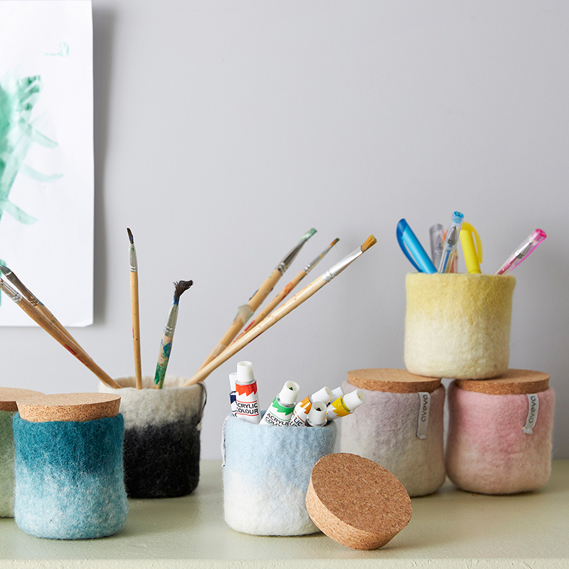Handgjord burk i ull, med lock av kork. En naturlig förvaring för dina mindre ägodelar. Perfekt för småförvaring i ditt kök, badrum eller till dina smycken.