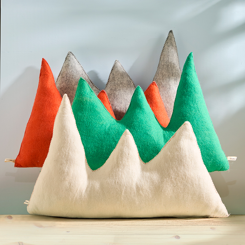 En kudde inspirerad av naturens majestätiska berg. Dess enkla, stiliserade form ger en modern och charmig känsla, samtidigt som den bjuder in till lugn och avkoppling. Perfekt för dig som vill skapa en trygg och harmonisk atmosfär i ditt hem.