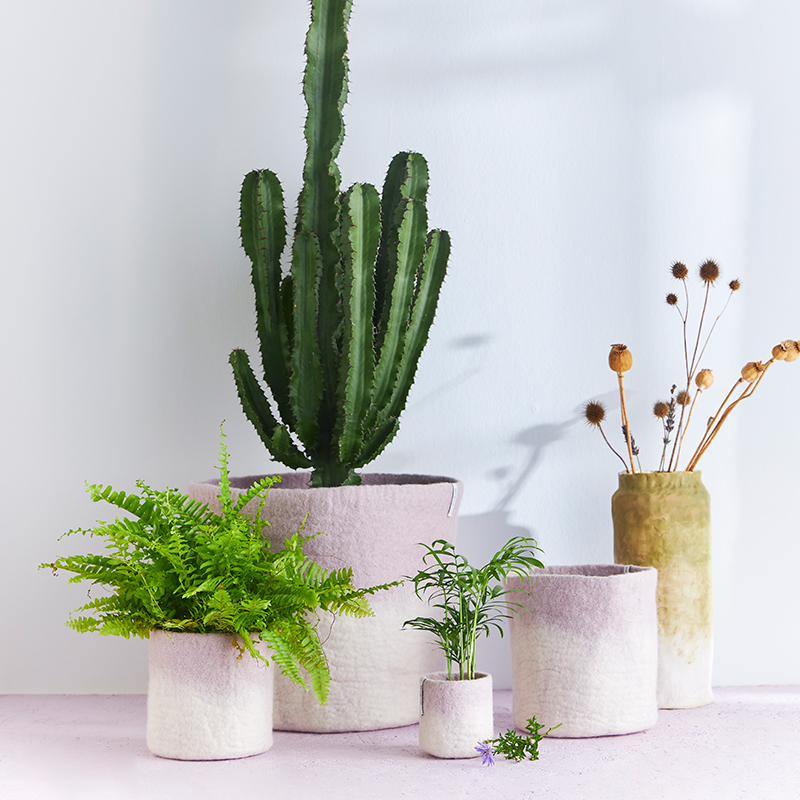 Avevas handgjorda krukor i ull med platt botten och två olika färger som blandar sig med varandra vilket ger en härlig ombré effekt. Insidan är behandlad med naturgummi vilket gör krukan vattentät. Perfekta krukor att placera i fönsterkarmen, på golvet, bordet eller varför inte hängande. Kombinera gärna Kruka 18 med vår ampel, rekommenderad till krukorna i storleken medium och large. Välj bland alla våra fina färger och placera dina växter i våra snygga ullkrukor.