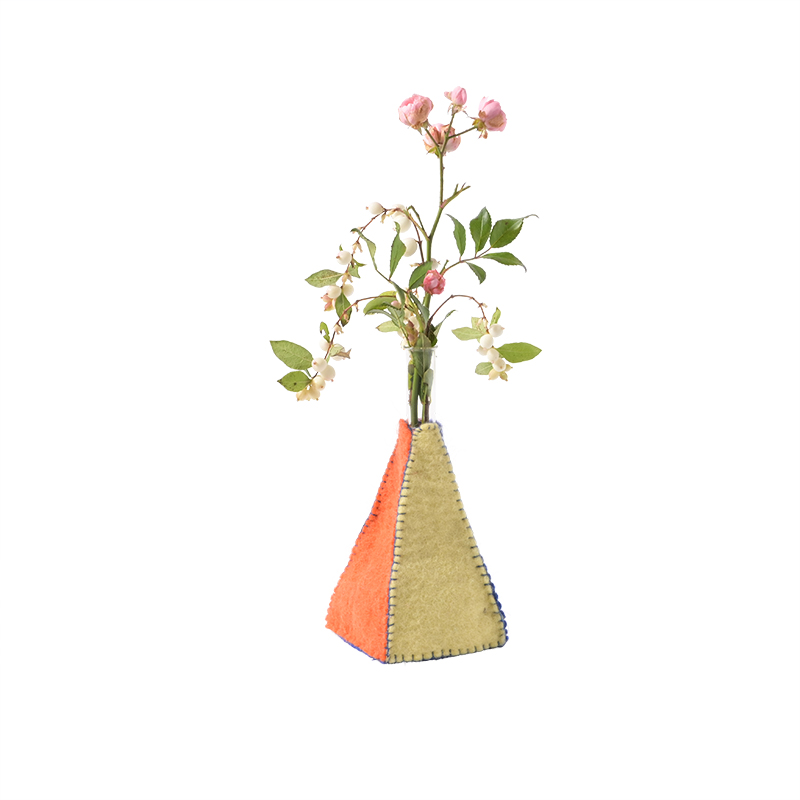 Med inspiration av pyramiderna, är denna vas i ull ett ljuvt litet hem för färska blommor. En balanserad blandning av ull, sand och glas gör vasen stabil och vattentät.